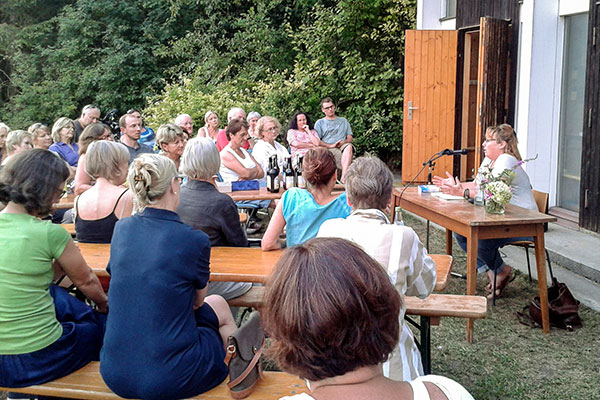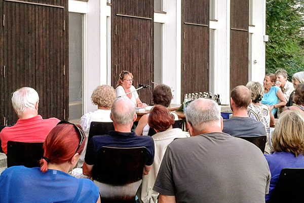 Am 7.8.2015 fand die Lesung der bekannten Krimi-Autorin Nicola Förg wie angekündigt im Evangelischen Gemeindezentrum statt, das gleich unterhalb des Huglfinger Bahnhof gelegen ist. Bei sommerlich heißen Temperaturen zogen wir es vor, die Lesung im Grünen gleich auf der Südseite des Gebäudes stattfinden zu lassen, auch wenn die Mücken zur Dämmerung begannen, uns lästige Tattoos in die Haut zu stechen. Nicola Förg las aus ihrem neuen Krimi „Glück ist nichts für Feiglinge,“ in der eine Katze und ihre schüchterne und zurückhaltende Eigentümerin uns durch die Geschichte führen. Sonja gewinnt im Verlauf der Handlung an Sicherheit und Offenheit und wir gewinnen eine unterhaltsame Lektüre, mit der uns auch Island, seine Landschaften und Stimmungen, ganz besonders aber seine Menschen näher gebracht werden. Gemordet wird dabei natürlich auch! Der gelungene Abend endete mit Nicola Förgs Erläuterungen ihrer Arbeitsweise und wie ein Buch zwischen Autorin, Lektorat und Drucklegung sich entwickelt und zuletzt bis zum Einband gestaltet wird. |