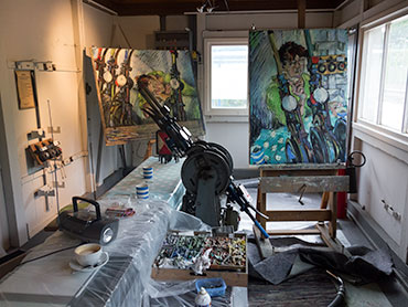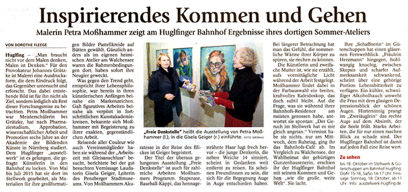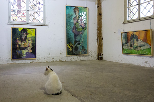 Am vorletzten Tag der Ausstellung mit Gemälden von Petra Moßhammer habe ich mich ein zweites Mal einteilen lassen für die Wacht über die Werke. Nach dem ich mehr als die Hälfte der Zeit in der „gewärmten Stube“ des Stellwerkes verbracht hatte, wechselte ich mit meiner Helferin ab und saß nun im Lagerschuppen nebenan.
